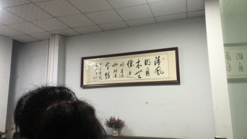 进入室内,办公室明显看到几根柱子立在那里,寓意到达了困境。只有那幅“清风明月本无价,近水远山皆有情”彰显主人独特品味及当年辉煌。