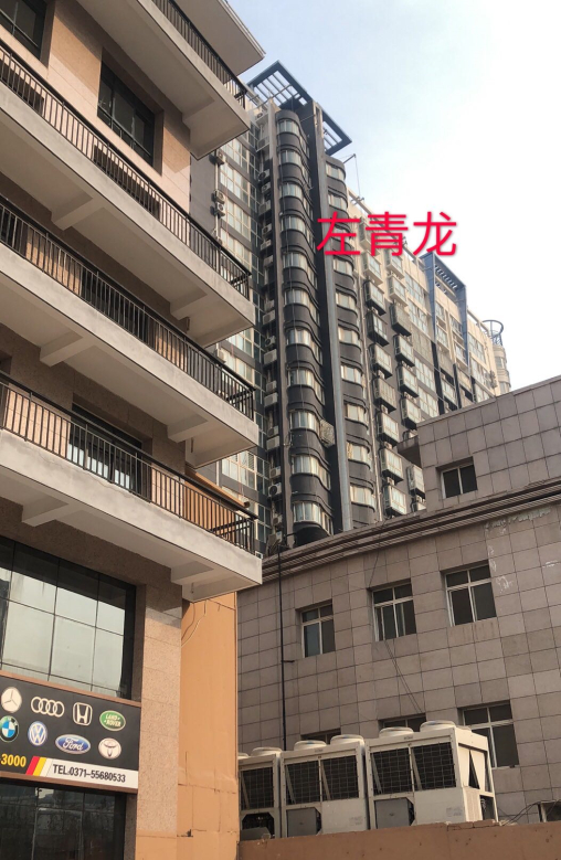 商铺的左边是20多层的住宅楼,也就是我们所说的青龙位,明显高起。